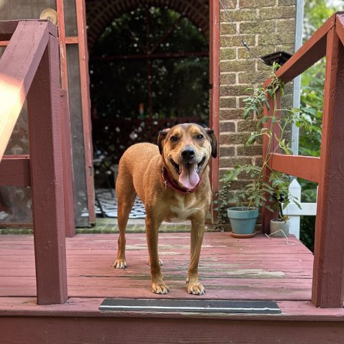 Hopper is a mixed breed, male, weighing about 60 pounds. He absolutely loves going for walks, but is prey driven so needs redirection when wildlife pops up. He loves to be petted, and will be anyone's friend who is willing to pet him. He is good with people, when new people come over he is calm and gentle. He loves to cuddle on the couch or in bed.