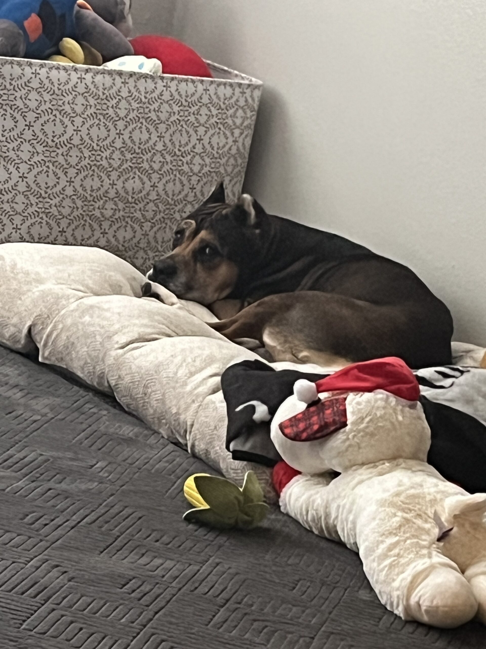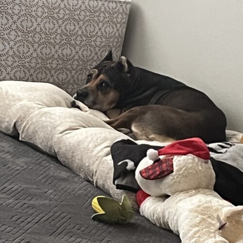 He’s a sweet gentleman and has separation anxiety. Walks tremendously on a leash and warms up to you quickly. He mostly sleeps all day and is great on walks as well. Non reactive so far to other animals or people on walks as well.